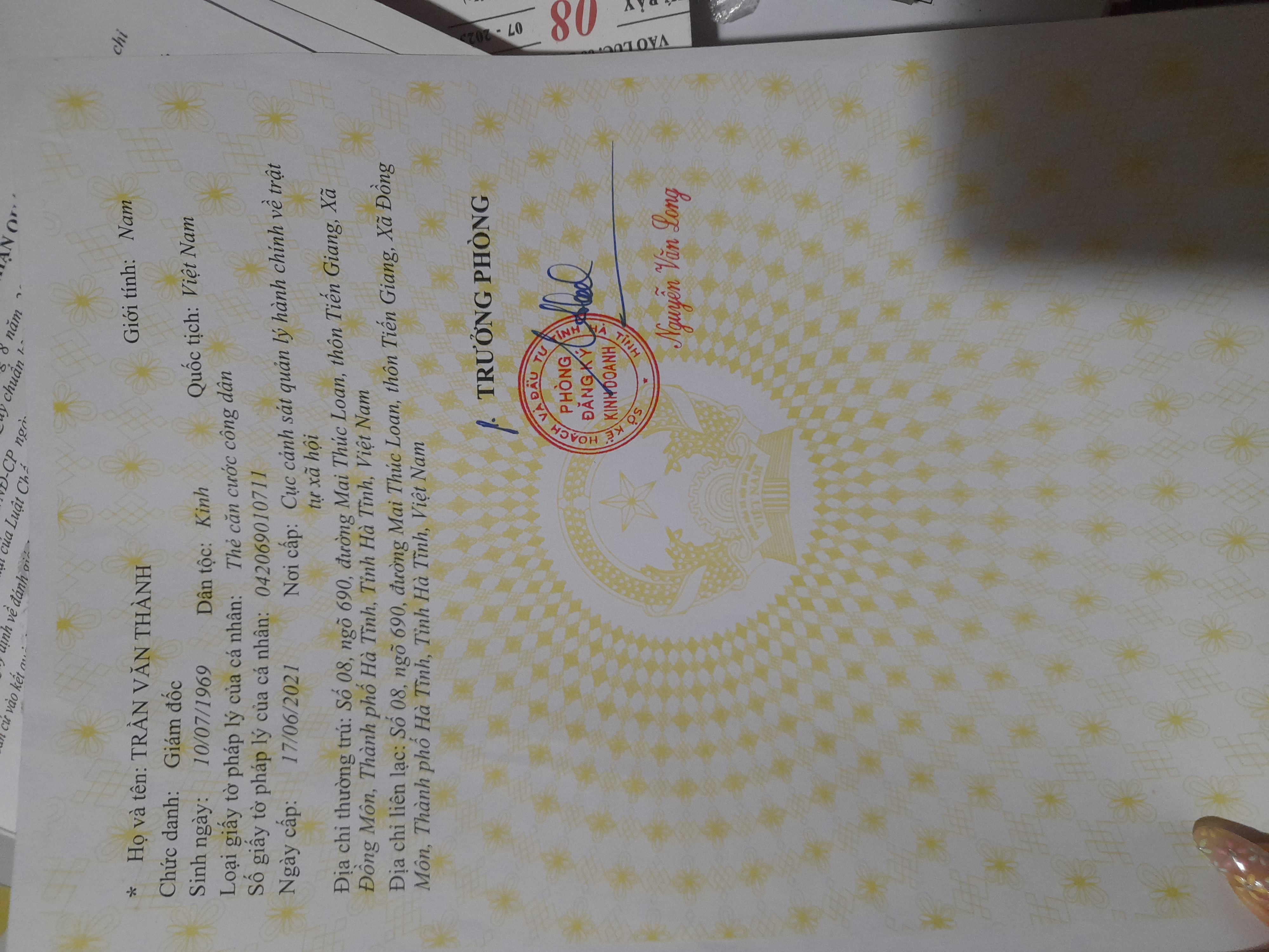 Số nhà 08, ngõ 690 đường Mai Thúc Loan, xã Đồng Môn, thành phố Hà Tĩnh