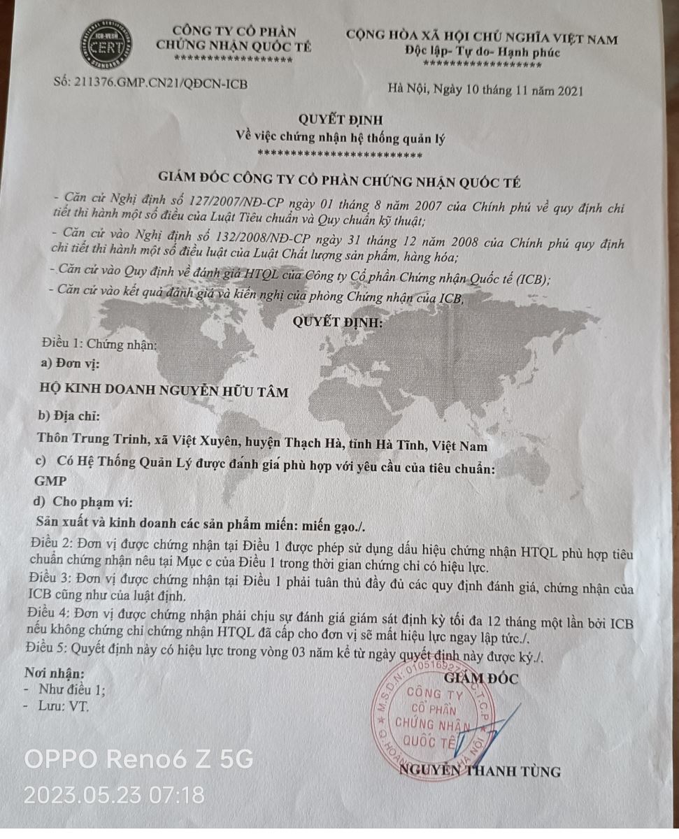 Cơ sở Miến gạo Hương Tâm đã tiếp nối truyền thống của vừng quê lịch sử gắn với truyền thống nghề miến gạo của quê hương Việt Xuyên xưa. Những sợi miến gạo được chế biến từ máy có màu tự nhiên được tạo nên từ những hạt gạo quê chắc tròn mới thấm hết sự tỉ mẩn, thuần thục và tâm sức của người làm. Đó là phải tuân thủ một quy trình nghiêm ngặt, trải qua nhiều công đoạn, từ khâu chọn nguyên liệu đến hoàn thiện sản phẩm. Trước hết nguyên liệu là những hạt gạo Khang dân 18 được trồng trên vùng đất Việt Tiến, rồi xay thành bột, ngâm nước trong vòng 30 phút nhằm đạt đến độ dai ngon nhất định; tiếp đến sẽ được đưa vào máy đùn để tạo khuôn. Tất cả công đoạn diễn ra trong 3 tiếng đồng hồ khi đó mới cho ra sản phẩm Miến gạo Hương Tâm có mùi vị thơm ngon đặc trưng.