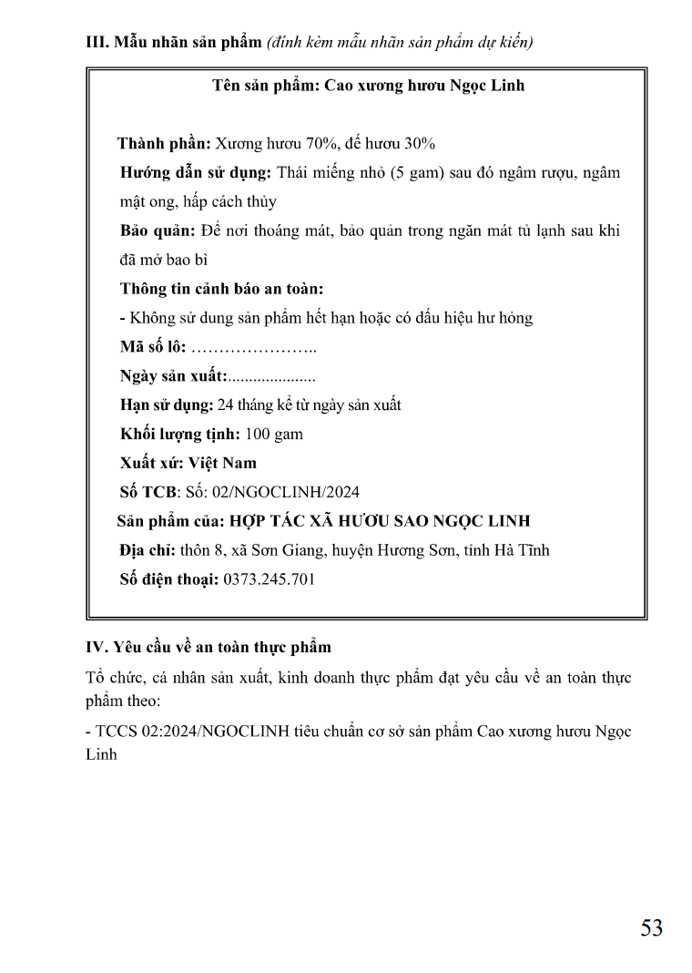 Tên đơn vị/nhà sản xuất: Hợp tác xã hươu sao Ngọc Linh