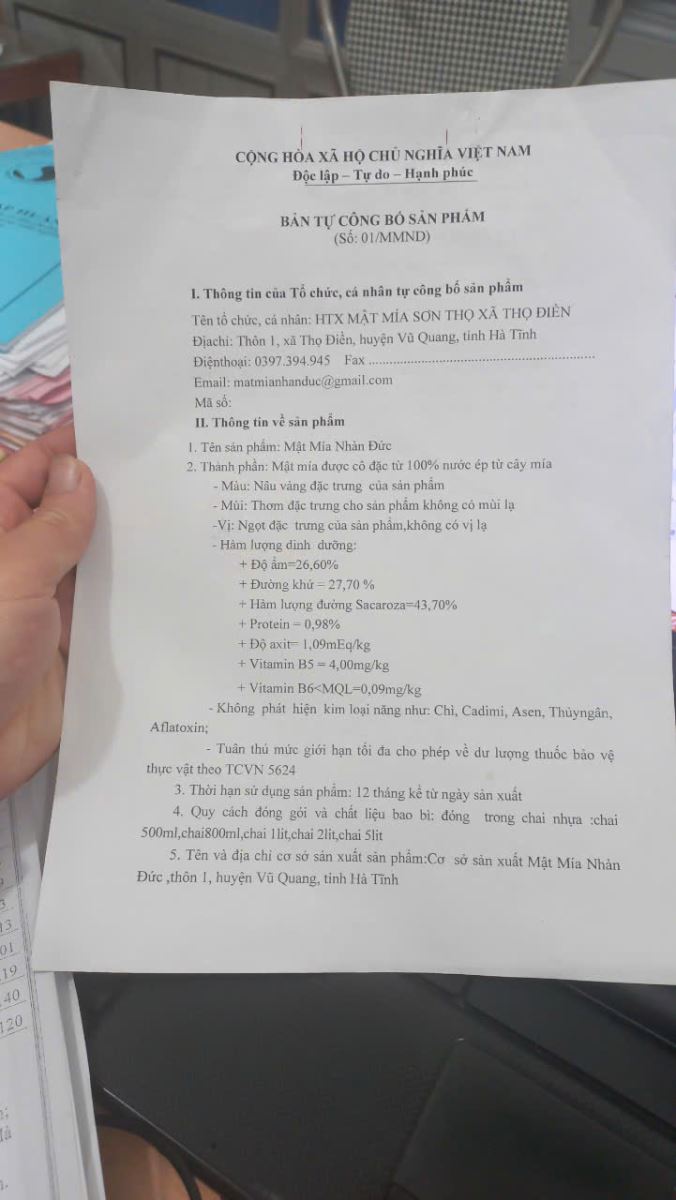 Tên đơn vị/nhà sản xuất: Hợp tác xã dịch vụ mật mía Sơn Thọ xã Thọ Điền