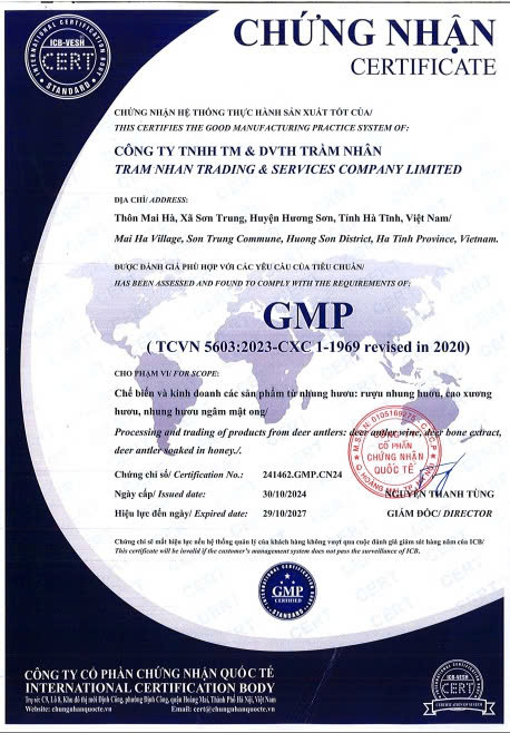 Nhân, được chọn lọc từ nguồn nhung hươu nuôi tại huyện Hương Sơn, tỉnh Hà Tĩnh