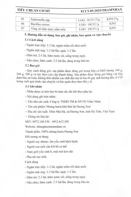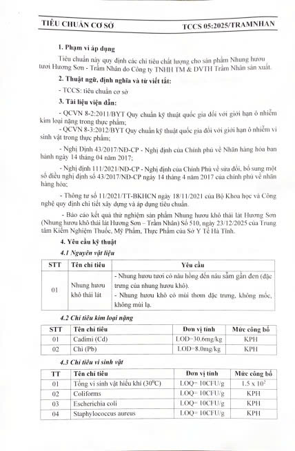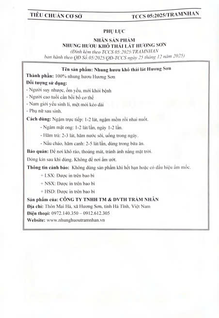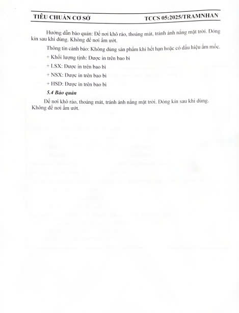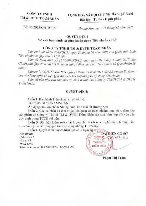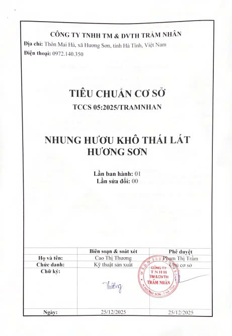 - Tiêu chuẩn: TCCS 05:2025/TRAMNHAN