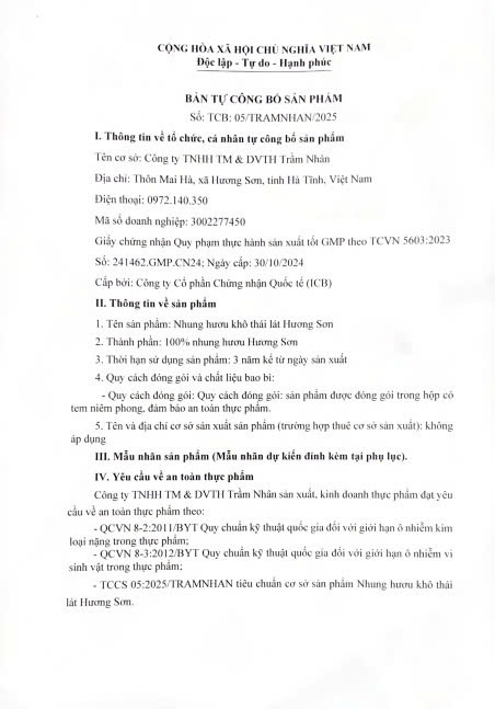 Tên đơn vị/nhà sản xuất: Công ty TNHH TM & DVTH Trầm Nhân