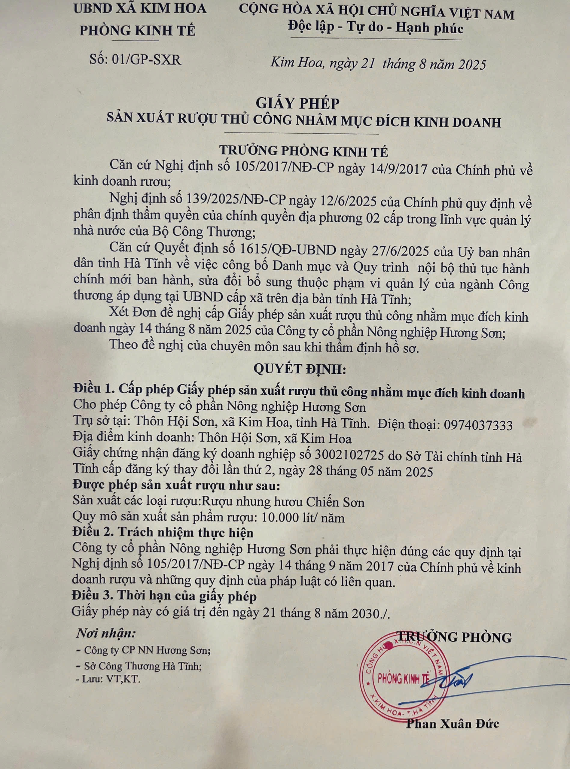 Địa chỉ: Thôn Hội Sơn, xã Kim Hoa, tỉnh Hà Tĩnh