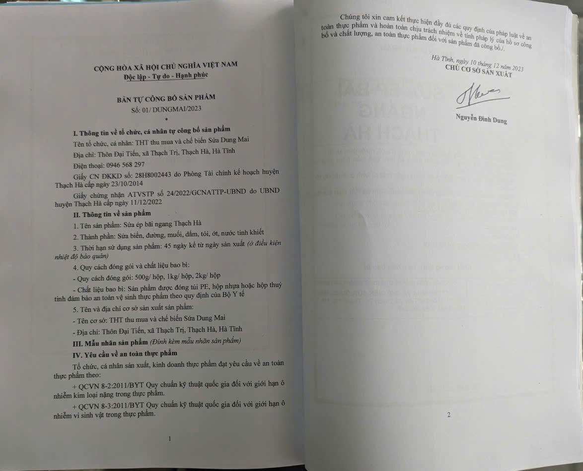 Tên đơn vị/nhà sản xuất: THT thu mua và chế biến Sứa Mai Dung