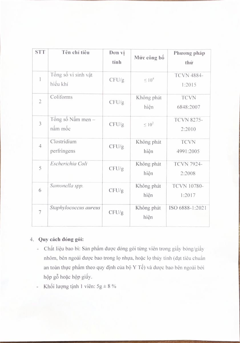 • Khối lượng tịnh 01 viên: 5g ± 8%