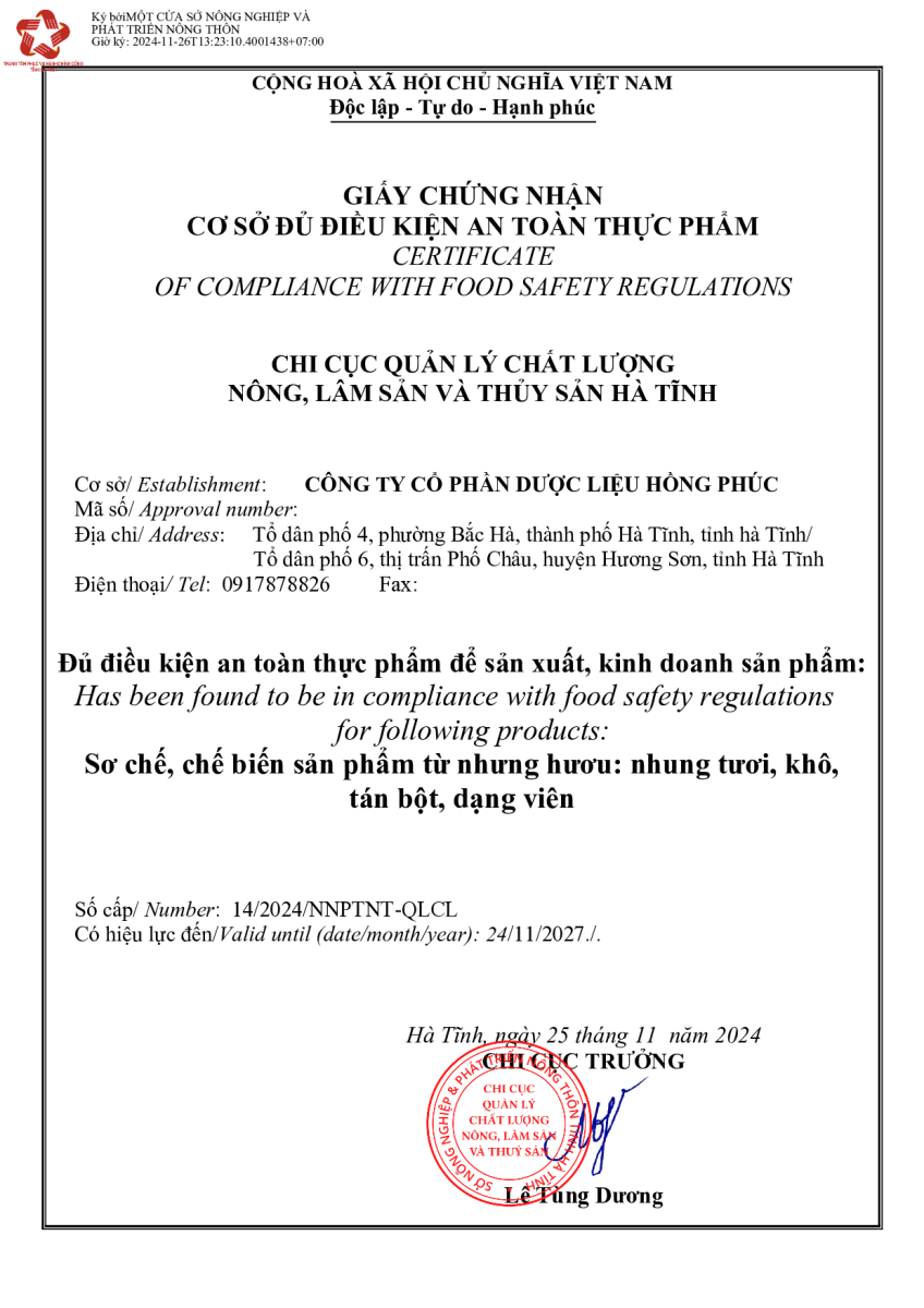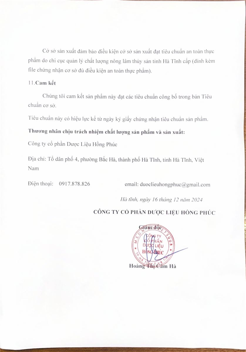 Tên đơn vị/nhà sản xuất: CÔNG TY CỔ PHẦN DƯỢC LIỆU HỒNG PHÚC